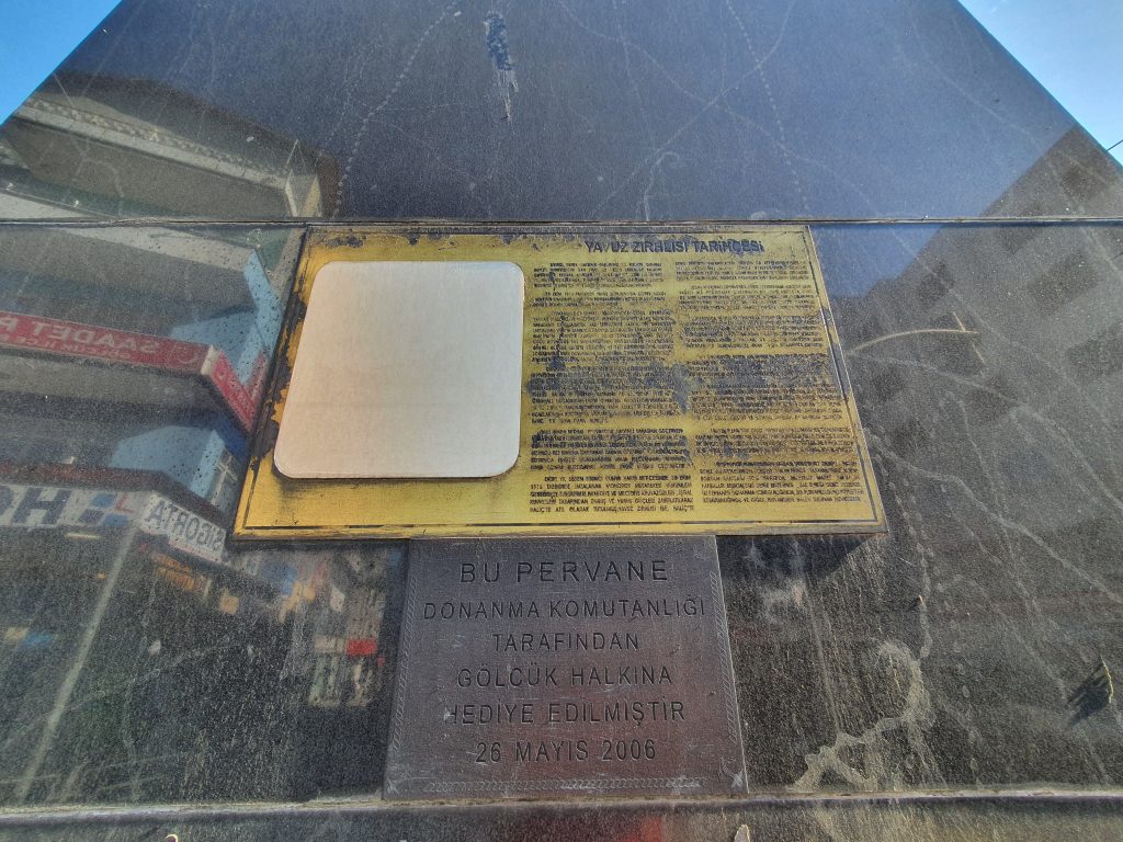 Gölcük-İzmit D-130 karayolu kenarında, Amiral Sağlam Caddesi girişine Gölcük Donanma Komutanlığının hediyesi olarak 2006 yılında yerleştirilmiştir.